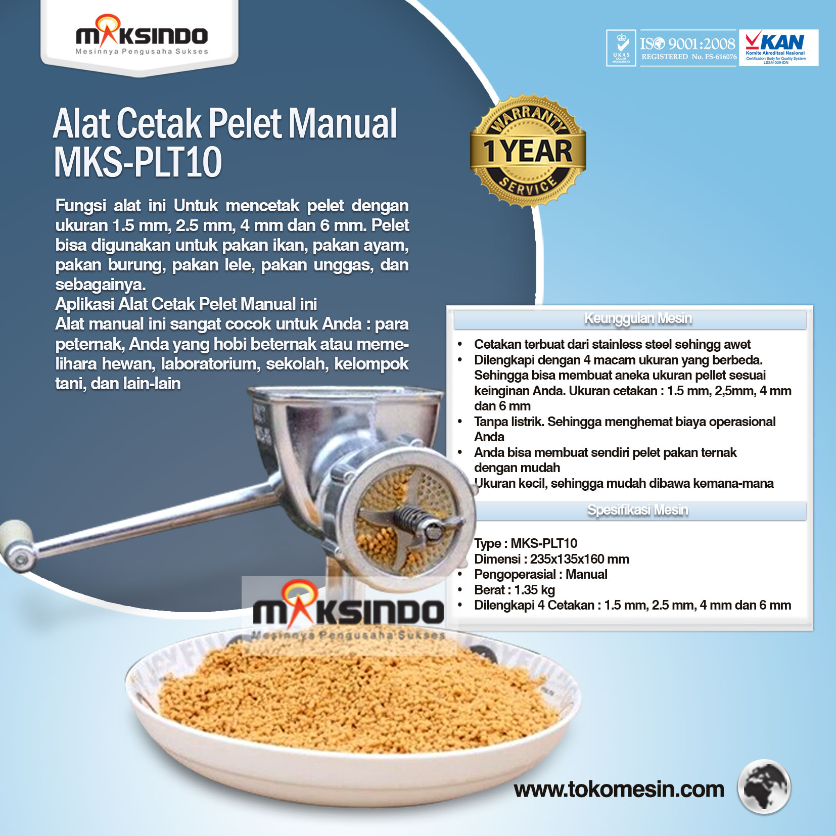 Spesifikasi Alat Pencetak Pellet Manual Maksindo