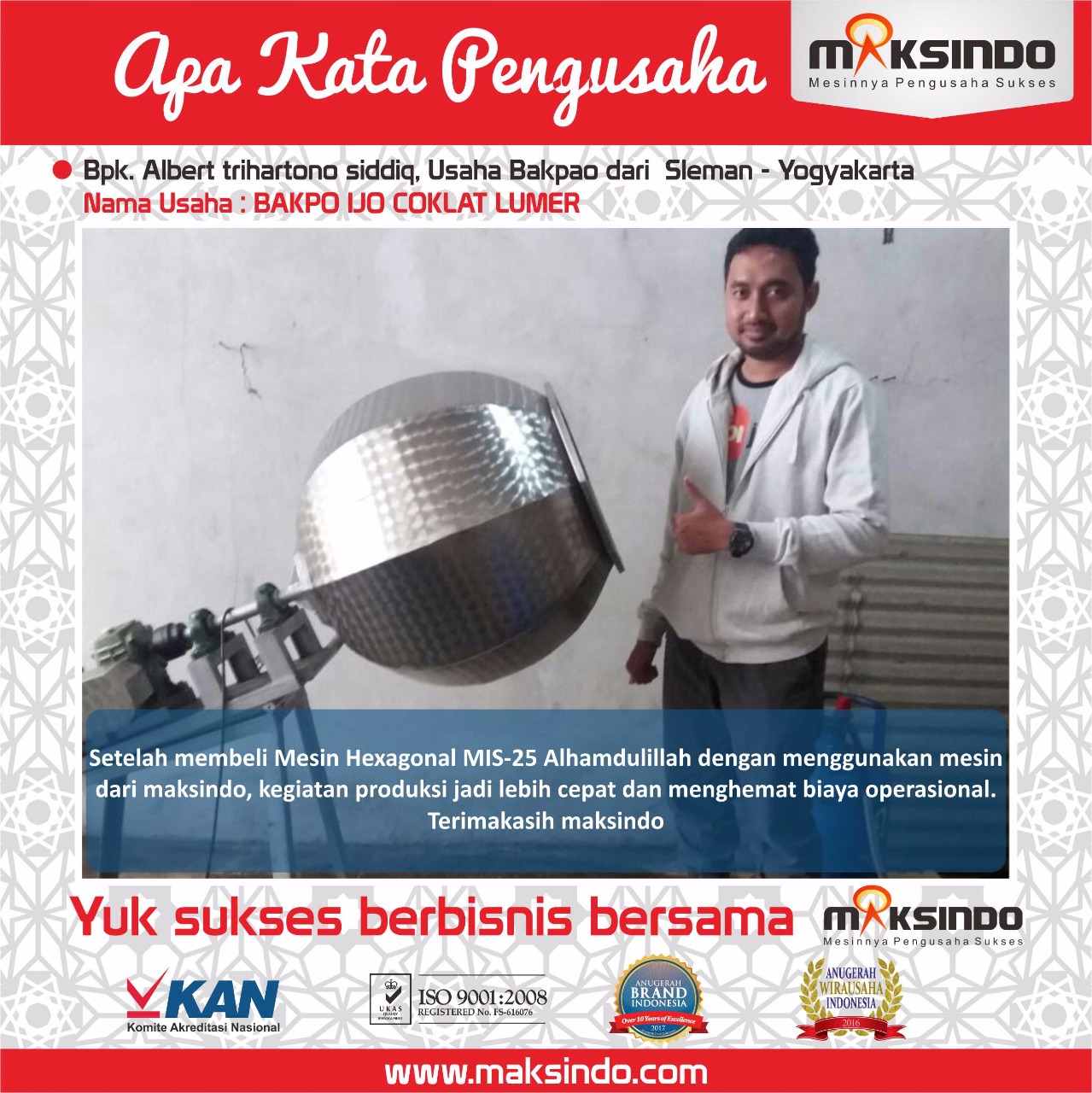 “APA KATA PENGUSAHA PENGGUNA MESIN PENGADUK BUMBU HEXAGONAL MIS-25 MAKSINDO”