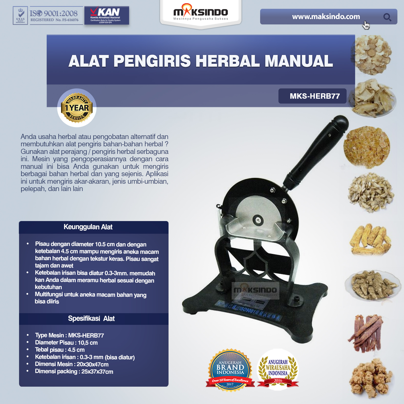 Jual Alat Pengiris Herbal Manual (MKS-HERB77) di Makassar