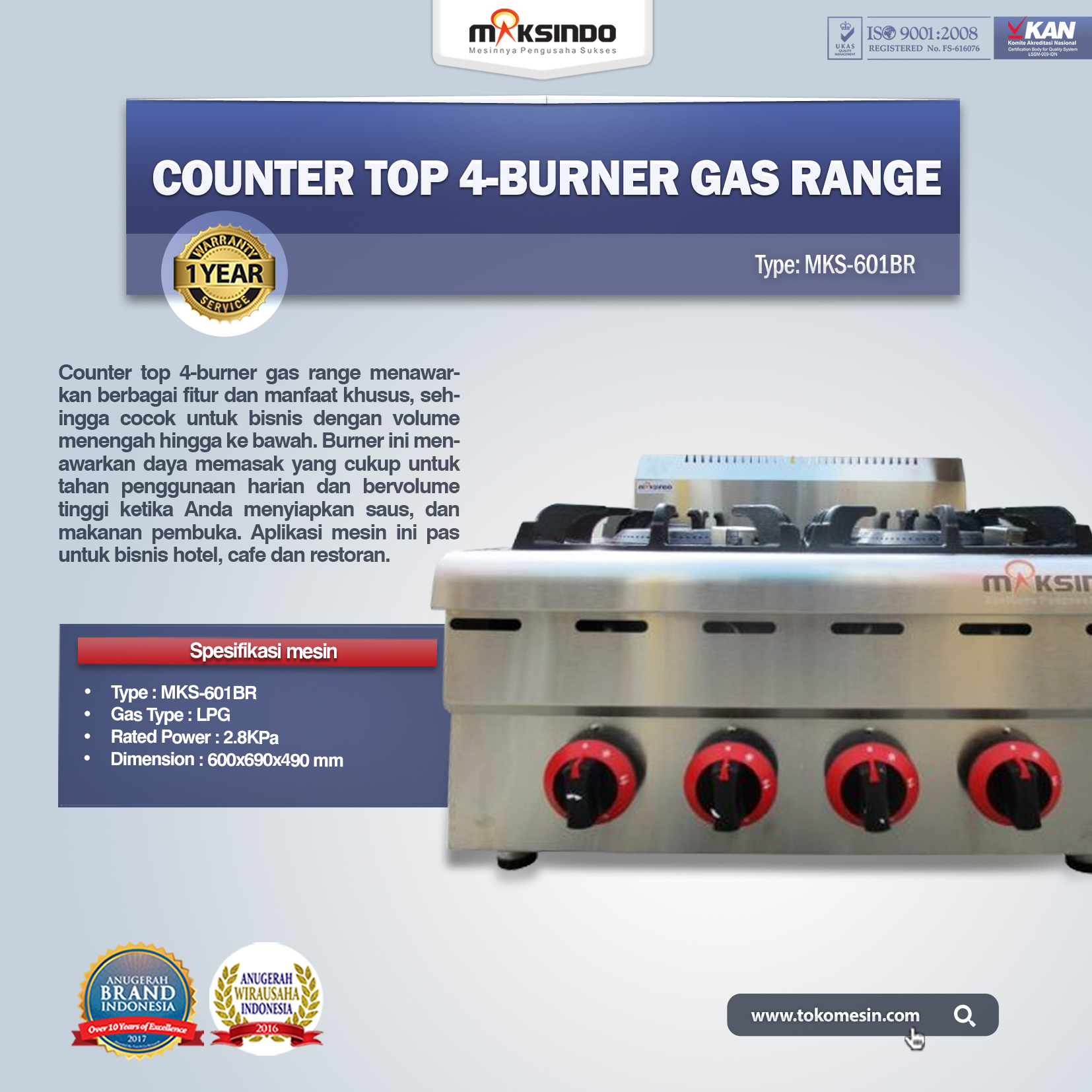 Jual Counter Top 4-Burner Gas Range di Makassar Toko Mesin Makassar January 10, 2018 Mesin Baru, Mesin Makanan Counter Top 4-Burner Gas Range Spesifikasi :Type : MKS-601BRGas Type : LPGRated Power : 2.8KPaDimension : 600x690x490 mmHarga Makasar : Rp 9.140.000