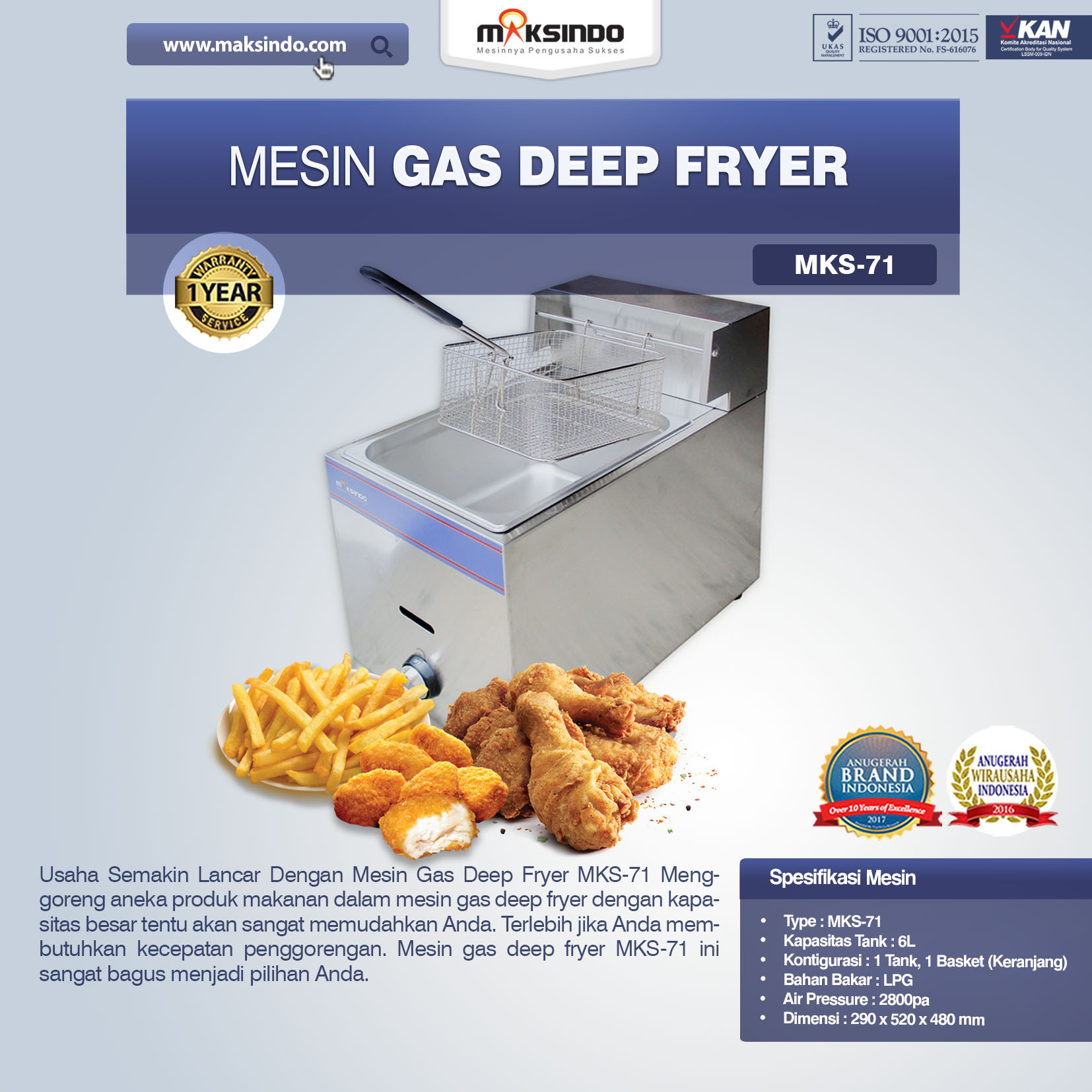 Jual Mesin Gas Deep Fryer MKS-71 di Makassar