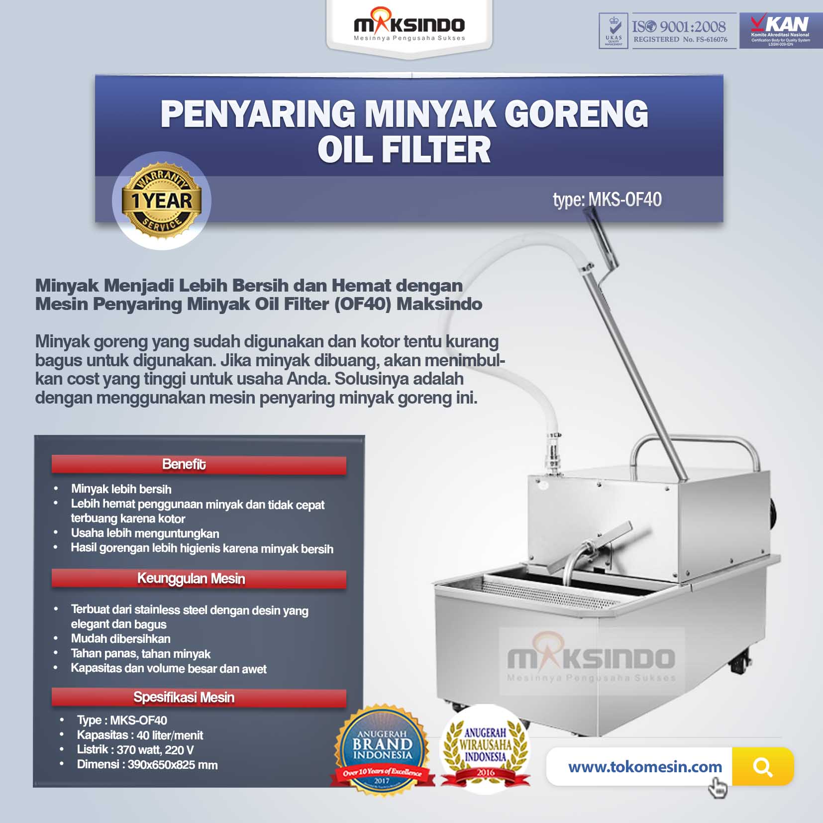 Minyak Menjadi Lebih Bersih dan Hemat dengan Mesin Penyaring Minyak Oil Filter (OF40) Maksindo